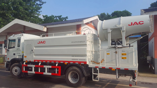 抑塵車(chē)的整體構造與其他貨車(chē)大同小異,只是車(chē)的中間部位是巨大的“水箱”,后部像一尊可旋轉的“大炮”。 工作時(shí)開(kāi)動(dòng)機器,“水箱”里的水通過(guò)高壓水泵泵出,在風(fēng)機作用下變成霧狀小水珠并噴射到空中。這些霧狀小水珠降落時(shí)可以把空氣中的灰塵、酸性物質(zhì)的小顆粒帶下來(lái),達到凈化空氣的作用。而日常使用的灑水車(chē)只能對地面的浮塵進(jìn)行清理,空氣中的降塵卻一直都比較難處理。而這種噴霧式多功能抑塵車(chē)是通過(guò)將水轉化為水霧的形式,直接對大氣中的粉塵進(jìn)行抑制,這是灑水車(chē)無(wú)法做到的。