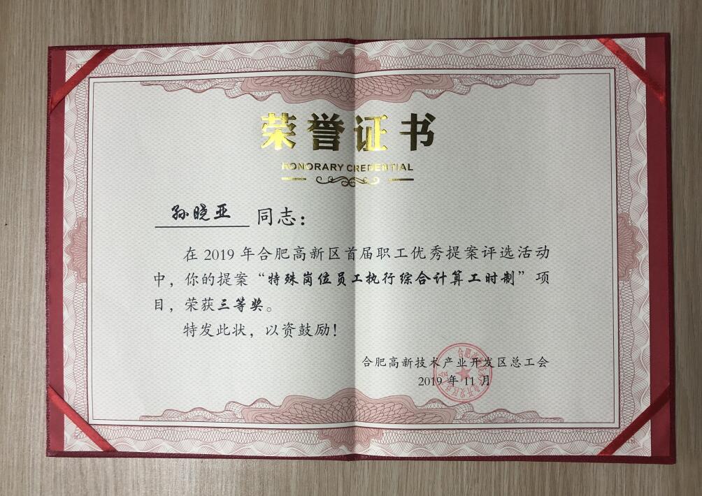 11月21日,高新區總工會(huì )對高新區職工代表優(yōu)秀提案進(jìn)行了評比通報,高新公交公司工會(huì )選送的《特殊崗位員工執行綜合計算工時(shí)制》提案,被評為高新區職工代表優(yōu)秀提案三等獎。