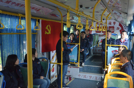 高新公交黨支部走進(jìn)公交車(chē)廂上黨課